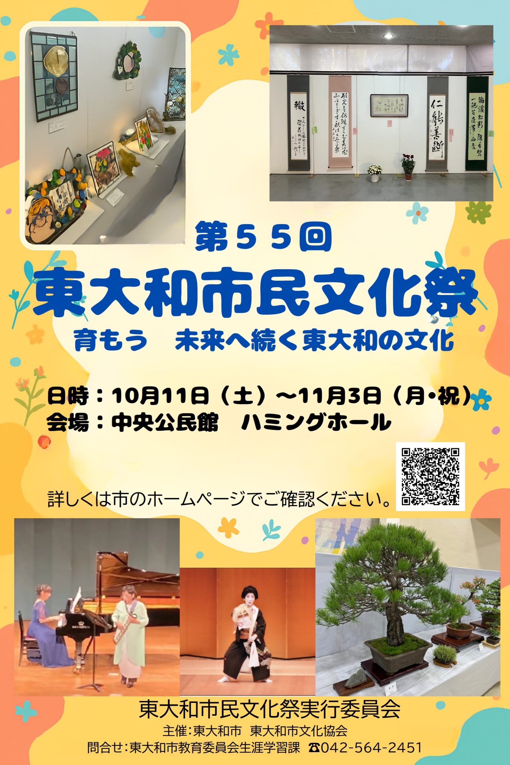 2025年10月11日に東大和市民会館ハミングホール小ホールにて、東大和市民文化祭の開会式が行われました。東大和市の市民文化祭は今年で55回を数え、市内の文化団体がハミングホールと中央公民館に集い、およそ3週間にわたって26の発表と展示で賑わいます。